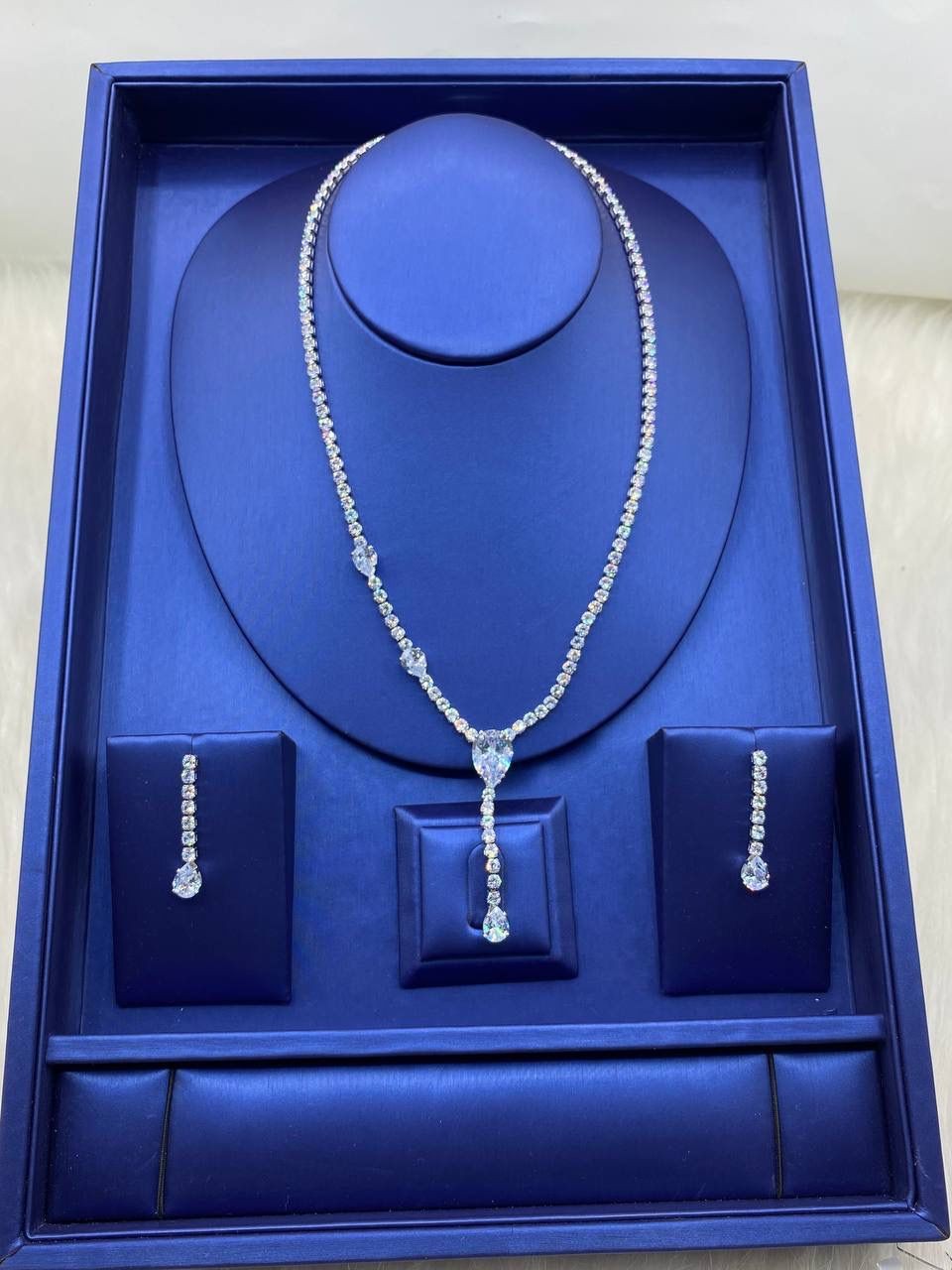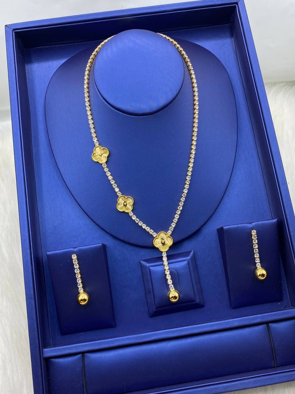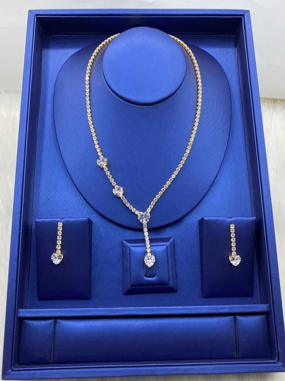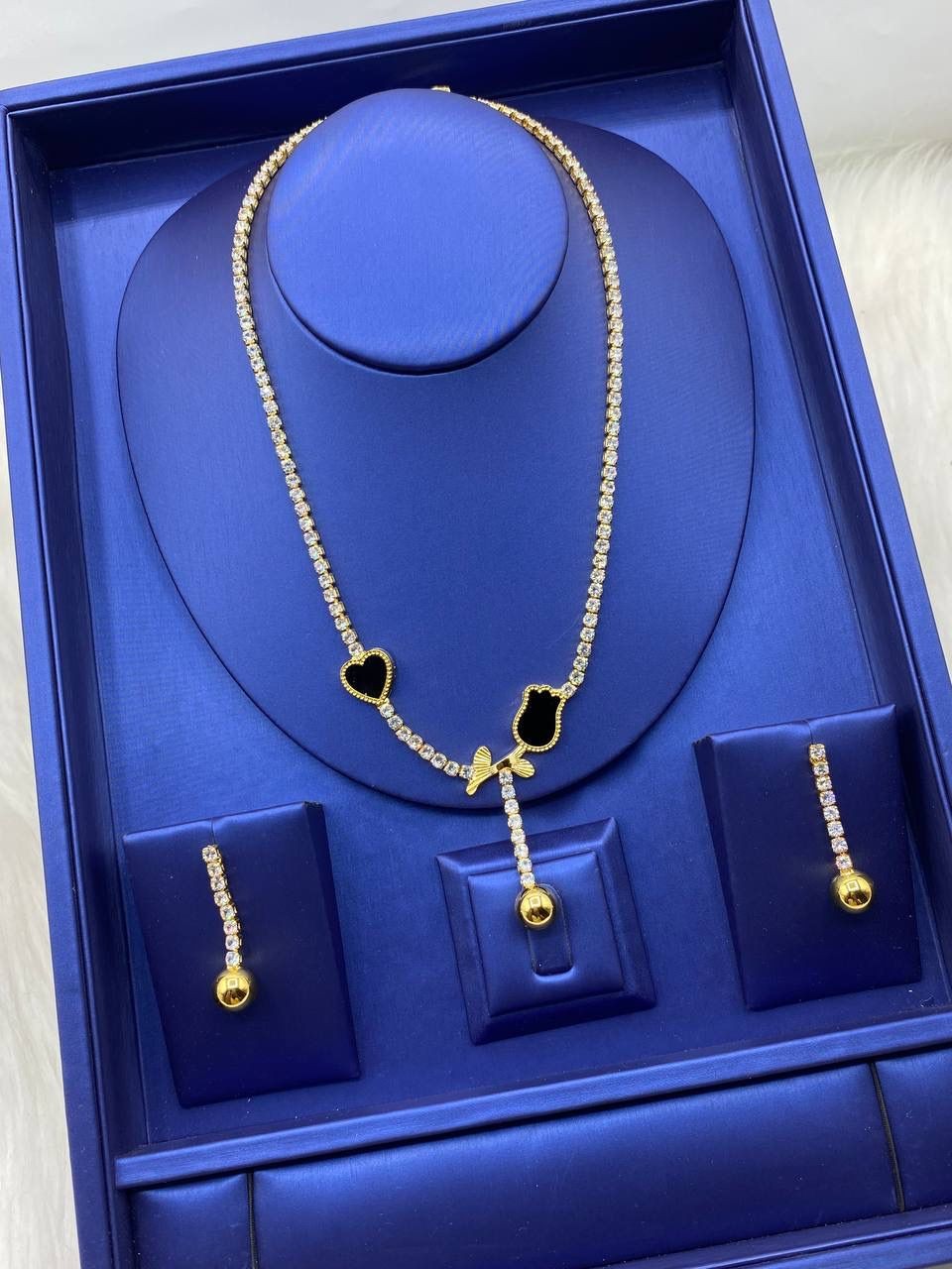 Shine effortlessly with our Tennis Designed Necklace and Earring Set – the ultimate combo of elegance and sparkle. Featuring a sleek, stone-lined tennis design, this jewelry set adds instant glam to any outfit – whether it's for date night, weddings, or that boss lady look. Lightweight, classy, and timeless, it's the perfect match for queens who love to stand out.